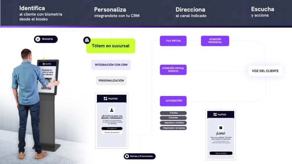 - Check-in Inteligente: Segmentación de clientes mediante el reconocimiento de clientes prioritarios o con cita previa, con condiciones especiales.